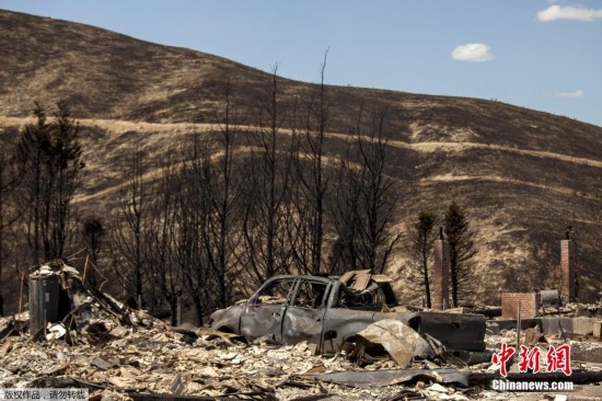 美国华盛顿州山火扑灭 山顶寸草不留仅剩废墟