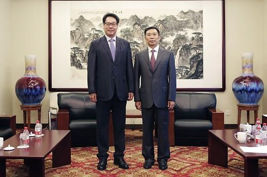 CCTV副总编辑张宁(右)与 MBC副社长权在弘合影留念
