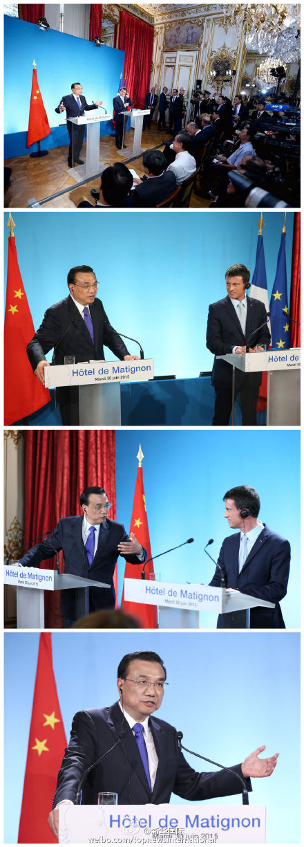 新华网北京7月1日电 据新华社“新华国际”微博报道,李克强总理30日与法国总理瓦尔斯共见记者时说,推动国际产能合作,把中方和发达国家的优势结合起来,生产关键技术设备,能以较低价格较高质量满足发展中国家需求,带动中国产业升级和发达国家扩大出口。中法开展核电、高铁等领域三方合作,实现互利三赢。