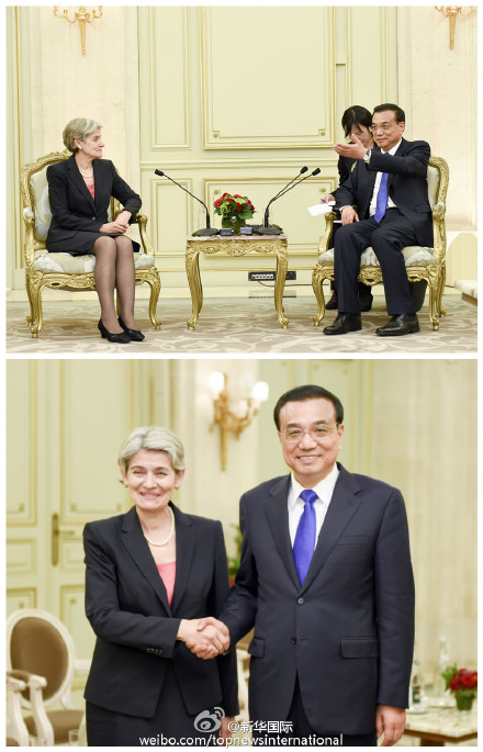 新华网北京7月1日电 据新华社“新华国际”微博报道,李克强总理30日晚会见联合国教科文组织总干事博科娃,赞赏教科文组织为推动世界文明多样性等所作努力,表示中方愿同教科文组织加强教育、文化等领域合作,促进不同文明、文化之间相互尊重、平等相待,在包容互鉴中实现团结与和谐发展。