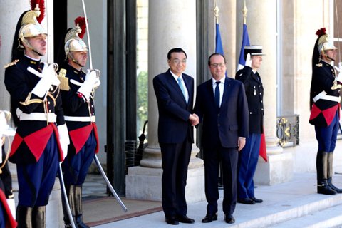 李克强总理30日在巴黎爱丽舍宫会见法国总统奥朗德。图片来自中国政府网