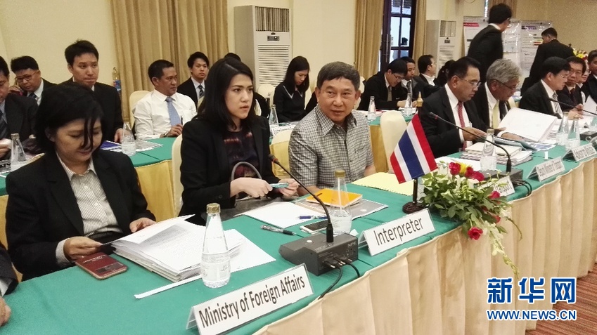 图为6月30日,中泰铁路合作联合委员会第五次会议上,泰国交通部长巴金(左三)领衔的泰方代表团。李颖/摄