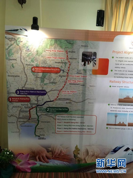 第五次会议会场陈列着泰国交通部展示的中泰铁路合作规划路线图。明大军/摄