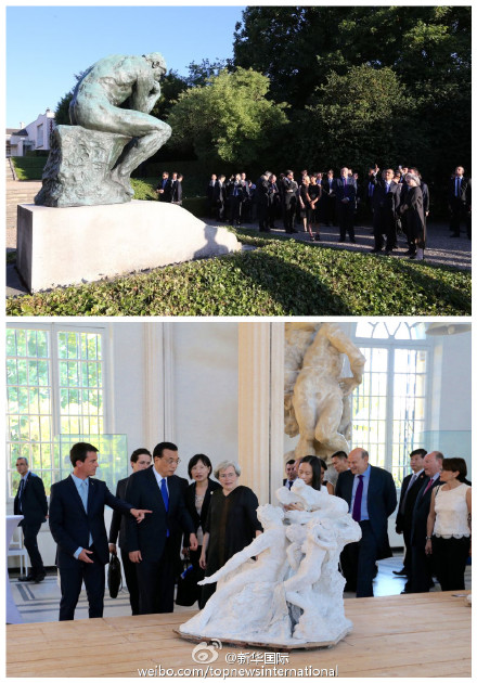 新华网北京7月2日电 据新华社“新华国际”微博报道,李克强总理30日在法国总理瓦尔斯陪同下参观罗丹艺术馆时说,罗丹既继承传统,又敢于突破传统,具有非凡的想象力,人类创新创造正需要这种想象力。希望两国有识之士要勇做中法创新合作的“思想者”,推动两国务实合作不断取得新突破。