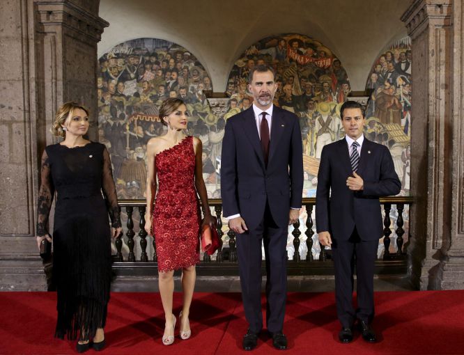 晚宴造型较有看点,西班牙网站上居然登出了《王后选择穿红色以彰显谁是真正的王后》这样“杀气”十足的标题,看来在西方人心目中红色也有不一般的含义。