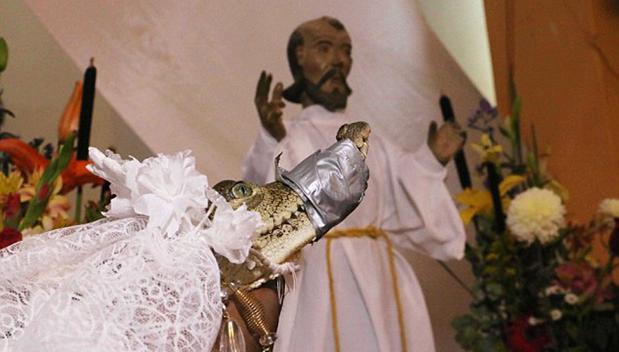 墨西哥镇长娶鳄鱼求丰收 “新娘”绑嘴出席婚礼(高清组图)