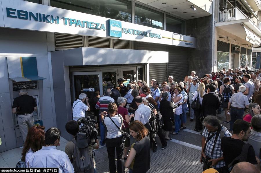 希腊民众拥堵银行引挤兑狂潮(高清组图)