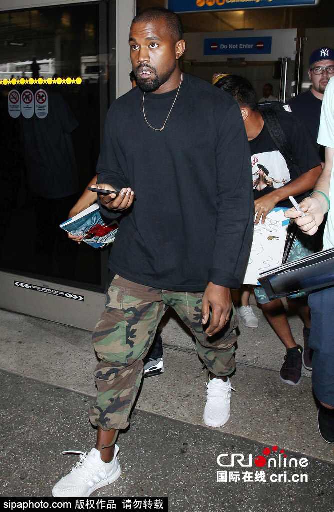 美国洛杉矶当地时间2015年7月1日,“侃爷”(Kanye West)现身洛杉矶国际机场。 图片来源:Sipaphoto