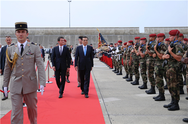 7月2日,国务院总理李克强出席法国总理瓦尔斯举行的隆重欢送仪式。刘震摄