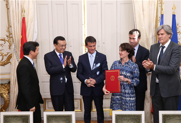 6月30日,国务院总理李克强与法国总理瓦尔斯会谈后共同出席签字仪式。新华社记者庞兴雷摄