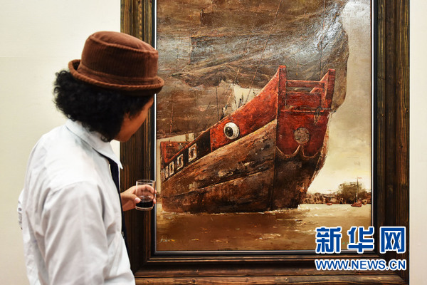 7月3日,在位于曼谷的泰国国家美术馆,一名学生在“海上丝绸之路——冯少协油画全球巡回展”上欣赏画作《清代·漳林港的红头船》。 新华网记者 李芒茫 摄