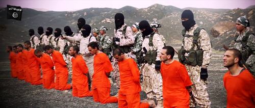 影片的最后,行刑者向所有IS人质头部开枪,影片甚至使用多角度及慢镜头记录了枪杀过程,极其残忍。