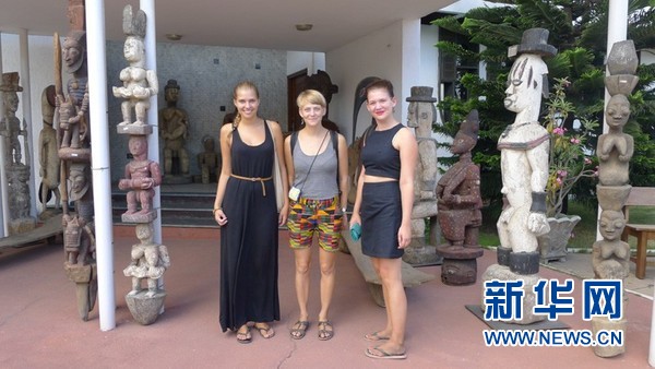 三名欧洲游客在博物馆门前留影。新华社发(非洲国际艺术博物馆 供图)