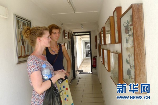 2012年3月24日,两名以色列大学生志愿者参观昆虫标本。新华社发(非洲国际艺术博物馆 供图)