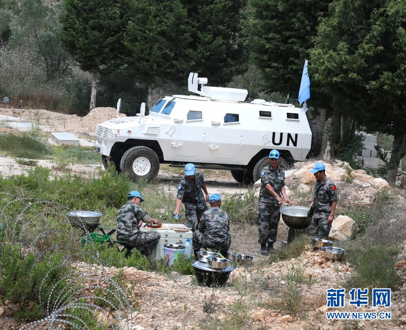 中国首批赴黎巴嫩维和建筑工兵分队在黎巴嫩与以色列临时边界“蓝线”战地午餐。王永安摄