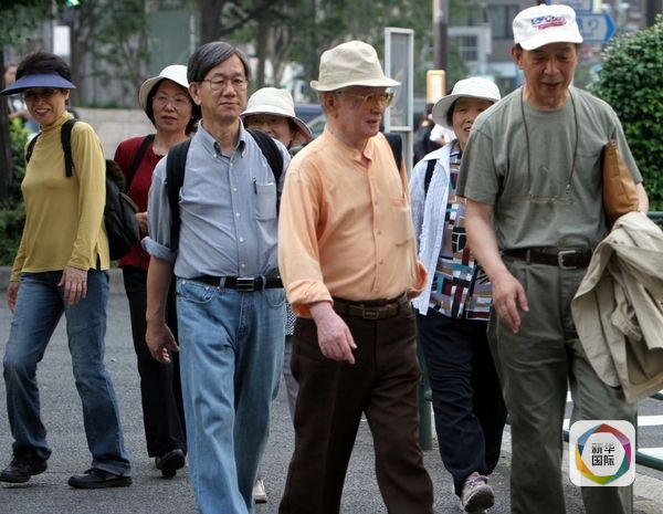 资料:2006年6月30日,在日本首都东京,老人们在街上行走。(图片来源:新华/路透)