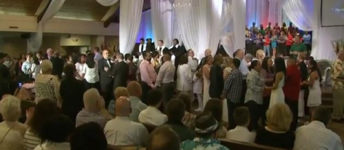 美休斯敦教堂举行集体婚礼 45对同性伴侣结为夫妻