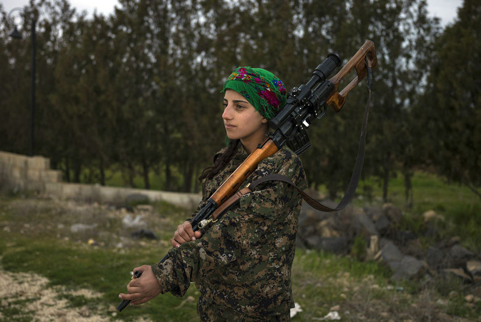 女战士巴克霍丹·科查尔。16岁。2014年加入库尔德女子自卫军。她说,“我加入库尔德女子自卫军,是为了保家卫国。当我关心政治问题时,家人总是回复说,‘你是女孩子,这不关你的事’。但当我看到库尔德女子自卫军的女战士们时,我才明白,自己渴望成为其中的一员。我将战斗到最后一滴血。”(网页截图)