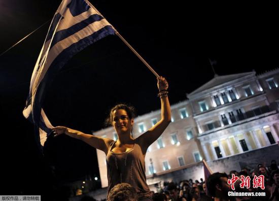 综合报道,希腊内政部公布的统计资料显示,北京时间7月6日上午,希腊公投选票已经全部开出,61.3%的选民反对债权人救助计划,仅有38.7%的选民支持。这意味着,希腊否决了协议草案。图为希腊雅典希腊公投反对者欢呼庆祝胜利。