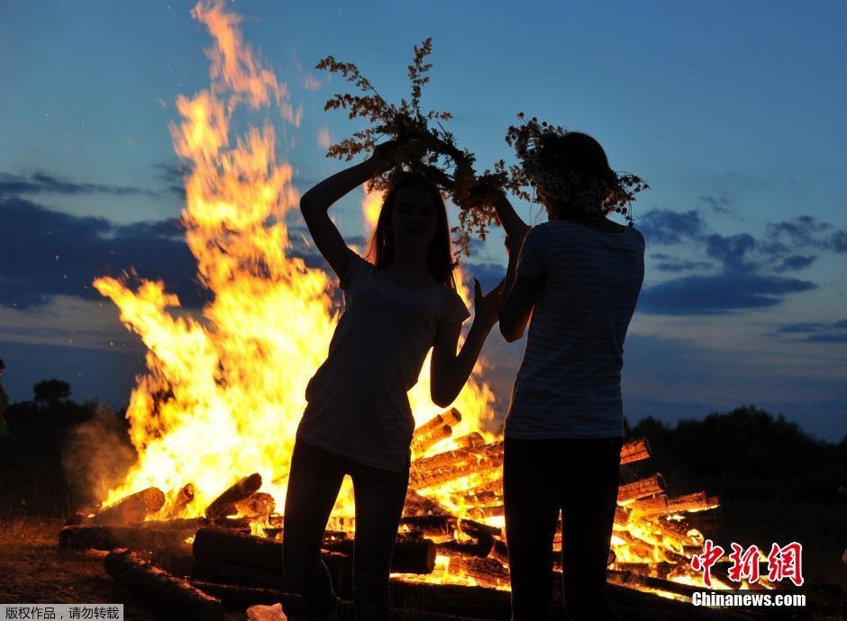 当地时间2015年7月7日,白俄罗斯TUROV,女孩们庆祝伊万库帕拉日。伊万库帕拉日原来是一种异教徒宗教仪式,纪念夏至到来。但自从基督教传播开来并占据主导地位后,这种仪式开始作为施洗约翰的生日庆祝方式。