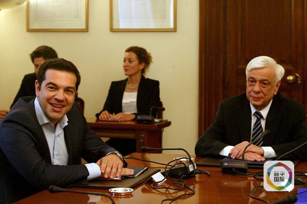 7月6日,在希腊雅典总统府,希腊总统帕夫洛普洛斯(右)与希腊总理齐普拉斯参加各政党领导人会议。