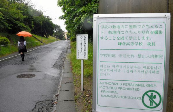 然而,令人担忧的“副作用”也随之而来。例如,不断会有私自闯进校内的观光客。对此,从去年秋天开始,校方便在校门口摆放了用4国语言书写的“禁止随意入内及拍照”的告示牌,但却没有明显改善。今年6月下旬,说着中文的一行男女4人进到校园中,并在体育馆前拍照,其中一名女性还Cosplay成婚纱装扮。