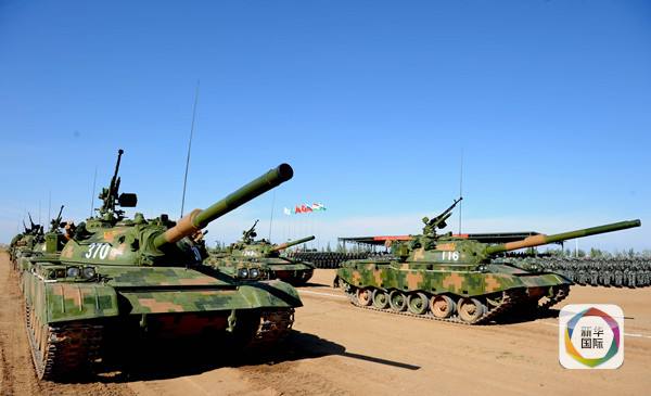 2014年8月29日,在内蒙古朱日和训练基地,中国人民解放军参演装备在“和平使命—2014”上海合作组织成员国武装力量联合反恐军事演习闭幕仪式上接受检阅。新华社记者 张领摄