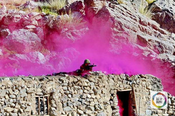 2013年8月11日,上海合作组织中吉主管机关边防部门“边防联合决心-2013”联合反恐演习在中吉边境地区举行。图为中国公安边防官兵在演习中选择制高点进行警戒。新华社发(王小雪摄)