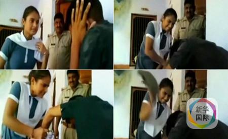本月6日,印度北方邦皮利比特地区一名在校女生在警察局内痛打一名在街上跟踪她的男子,相关视频流出后引发印度网民热议。