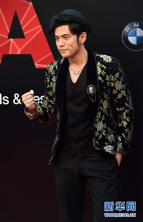 歌手周杰伦出席第26届金曲奖颁奖典礼。当晚,第26届金曲奖颁奖典礼在台北小巨蛋举行,将颁发最佳华语男歌手、最佳华语女歌手、最佳新人、最佳华语专辑、最佳作曲人等奖项及特别贡献奖。新华社发(吴景腾 摄)