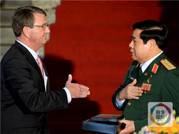 2015年6月1日,到访越南的美国国防部长卡特向越南国防部长冯光青归还了越战期间一名越南士兵的日记本。 新华/路透