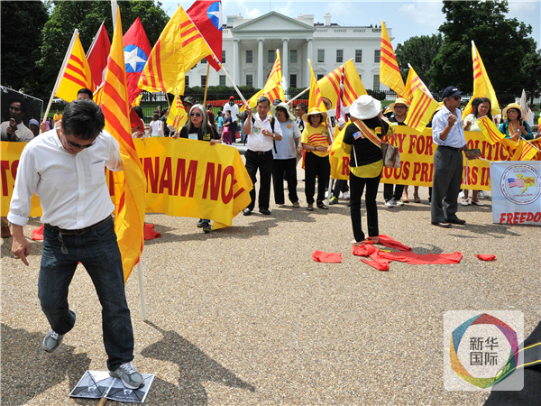 另外,就在越美最高领导人会晤的同时,有数百名越南人打着被推翻40年的西贡伪政权的旗帜举行反越集会。这些人是流亡美国的前西贡政权的遗老遗少。这次反越集会的组织策划者是被越南定性为恐怖组织的“越新党”。谁不知道长期以来公开或暗中庇护、支持他们的是些什么政治势力?最清楚的莫过于越美两国政府。
