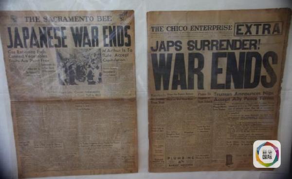 (图为1945年8月,两家加州报纸庆祝战争结束)