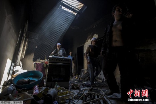 图为一户柏柏尔家庭的房屋在冲突中被烧毁,他们把还能使用的家电找出来。柏柏尔人是非洲北部民族,分布于非洲西北部,主要居住在摩洛哥(约占总人数的35%至60%)和阿尔及利亚(约占总人数的15%至33%)。