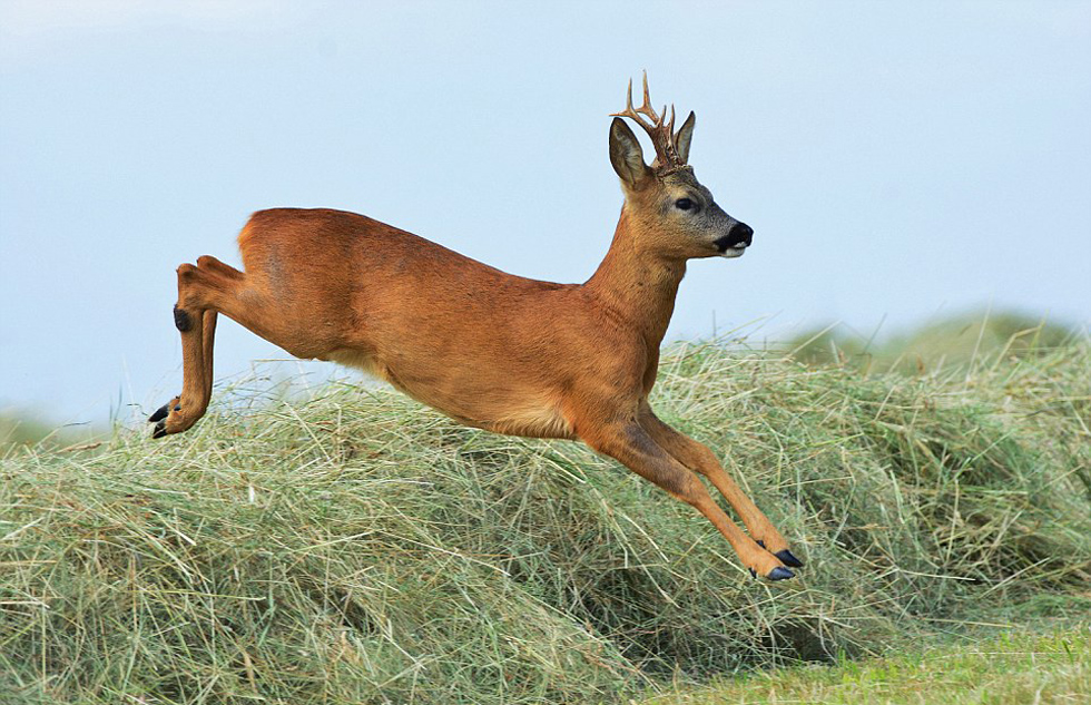 莉斯·达克(Liz Dack)在风景如画的诺福克拍摄到这只矮鹿跳跃的精美照片。(网页截图)