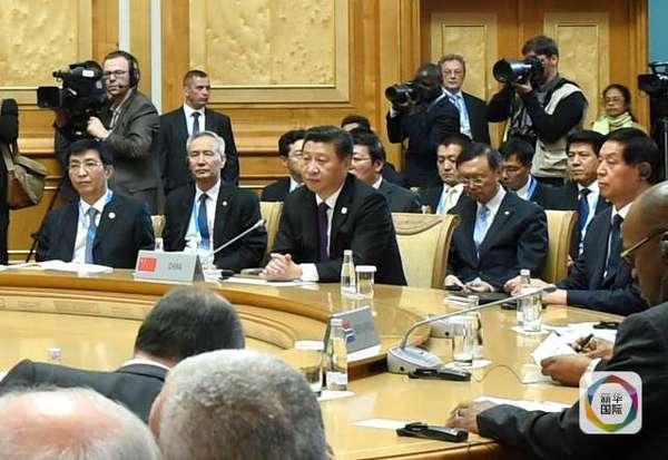 7月9日,金砖国家领导人第七次会晤在俄罗斯乌法举行。中国国家主席习近平、俄罗斯总统普京、巴西总统罗塞夫、印度总理莫迪、南非总统祖马出席。这是习近平主席出席大范围会议。新华社记者 饶爱民 摄