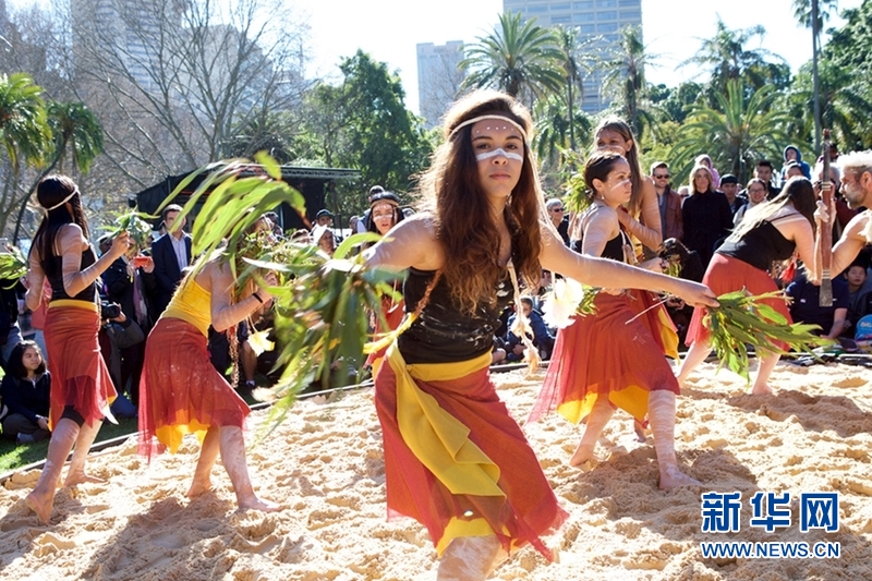 7月6日,在澳大利亚悉尼“全国原住民岛民纪念周”上,一群土著族人表演土著舞蹈。每年7月的第一个周日至第二个周日是澳大利亚的“全国原住民岛民纪念周”,各土著居民聚集区和主要城市都举办丰富的活动,展现土著居民和岛民的古老灿烂的文明。新华网发(悉尼市政府提供)