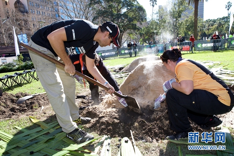 7月6日,在澳大利亚悉尼“全国原住民岛民纪念周”上,表演者开挖土著“地锅”。每年7月的第一个周日至第二个周日是澳大利亚的“全国原住民岛民纪念周”,各土著居民聚集区和主要城市都举办丰富的活动,展现土著居民和岛民的古老灿烂的文明。新华网发(悉尼市政府提供)