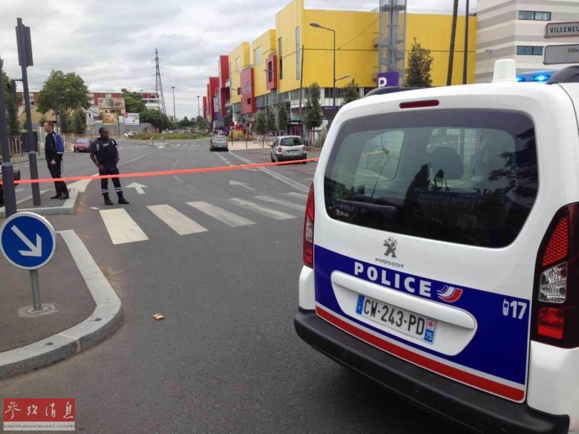 7月13日,警察在法国巴黎的持枪劫持事件现场警戒。据法国媒体当日报道,持枪人员当天在巴黎西部一购物中心劫持了大约10名人员。新华社记者陈晓伟摄