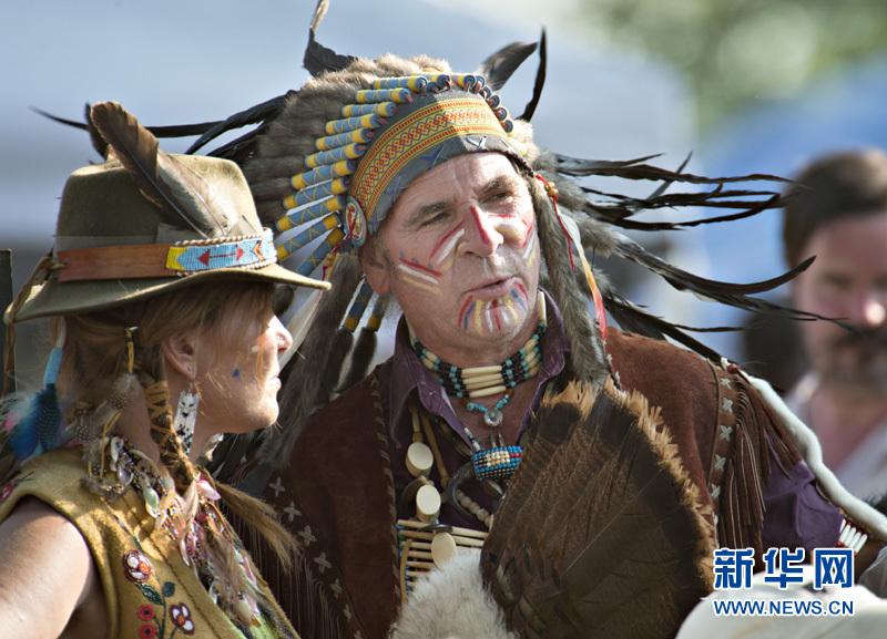 加拿大原住民节7月12日在蒙特利尔拉开帷幕,来自加拿大各地的原住民身着传统服装,将在今后的2个月里进行歌舞比赛, 以此纪念他们的祖先。在这段时间,原住民身穿各种色彩艳丽的民族服装,头戴各种头饰,脖子上挂着多种造型不同色彩的项链,手持羽扇和鹰爪杖,击鼓唱歌。歌者的歌声时高时低,时长时短,感觉一会似渴望奋进,一会是哀鸣呐喊。舞者的舞姿热情奔放,令人眼花瞭乱,目不暇接。原住民节已成为加拿大多元文化中的亮丽的风景线。(摄影 安德鲁·宋)。