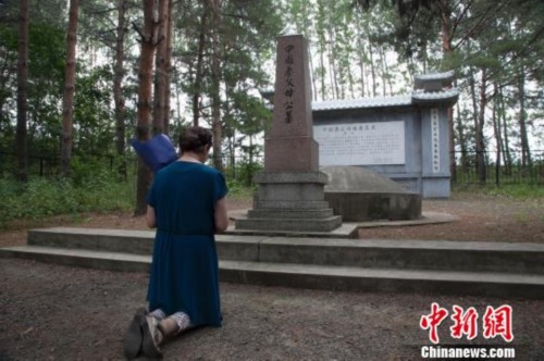 日本战后遗孤在哈尔滨祭拜中国养父母公墓(图)