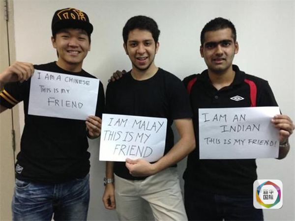 图为一名马来西亚网民在社交网站上发布照片,呼吁民众团结。新华社发