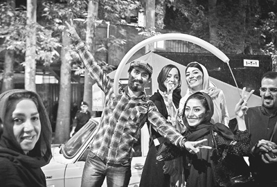 7月14日,伊朗民众在德黑兰街头庆祝伊核全面协议达成。新华社发