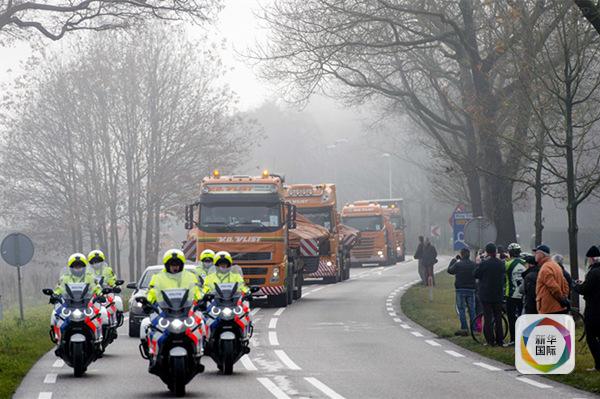 装载马航MH17航班残骸的卡车抵达荷兰南部的希尔泽-赖恩空军基地。