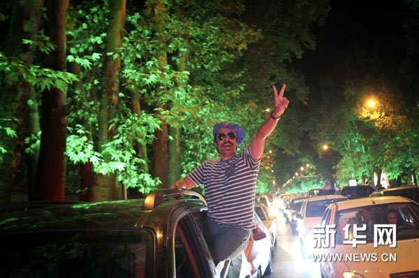 7月14日,民众在伊朗德黑兰街头庆祝伊核协议达成。新华社发(艾哈迈德·哈拉比萨斯摄)