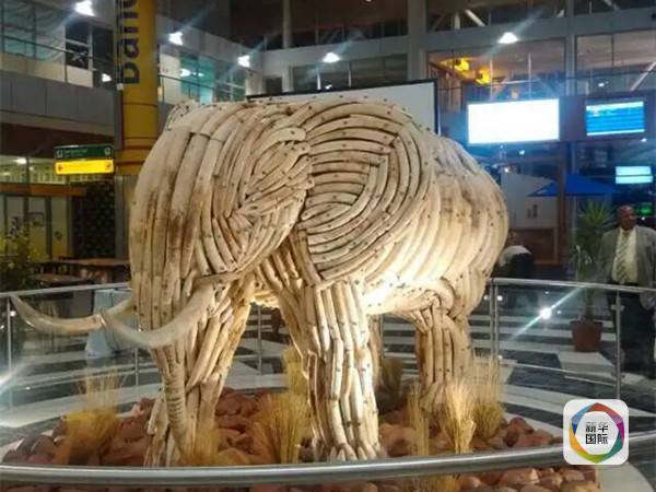 据新华国际客户端了解,艺术家们用一根根完整的象牙组成了站立的大象造型。这座塑像被放置在哈博罗内的塞雷茨·卡马国际机场大厅中央位置。据悉,这些象牙全部来源于自然死亡的大象。