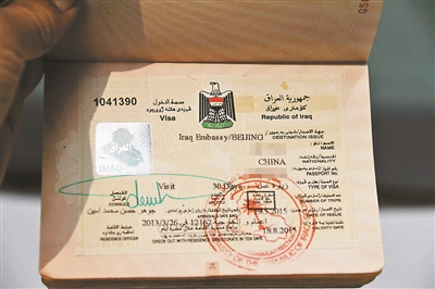 刘伟在微博展示自己的伊拉克签证
