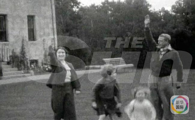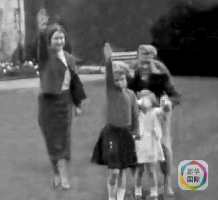 从这段摄于1933年的17秒黑白视频看,时任英国国王爱德华八世在和家人遛狗散步时,向当时不满7岁的侄女伊丽莎白女王(当时只是公主)和她3岁的妹妹玛格丽特公主展示了纳粹手势,两个孩子随后模仿了起来。