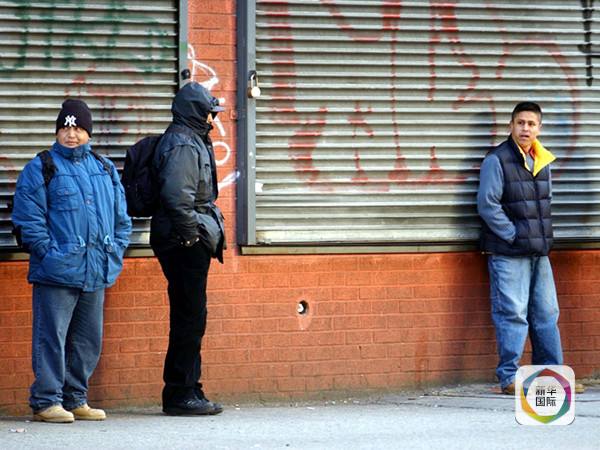 2004年1月8日,在美国纽约市皇后区罗斯福大道,几名来自墨西哥的男子在等待工作机会。