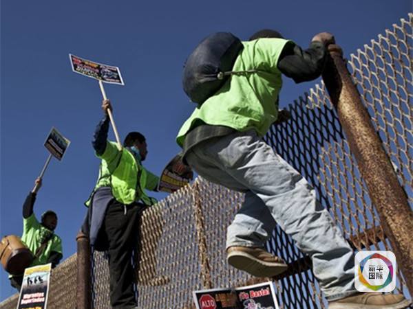 非法移民试图翻越美国和墨西哥边界护栏。